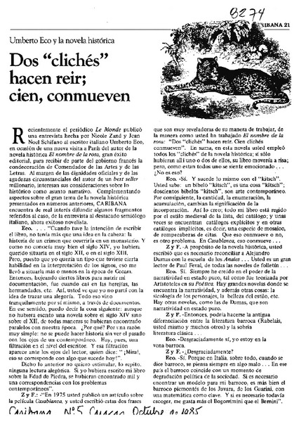 La segunda aventura de Umberto Eco [artículo] Guillermo Schavelzon.