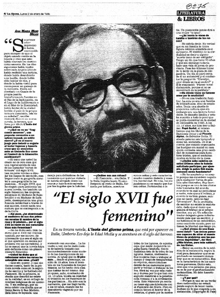 El siglo XVII fue femenino" [artículo] Ana María Mori Milán.