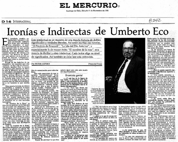 Ironías e indirectas de Umberto Eco [artículo] Peter Aspden.