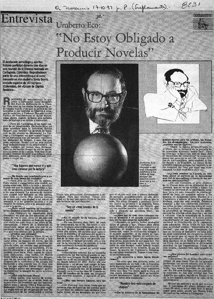 Umberto Eco, "no estoy obligado a producir novelas". [artículo]
