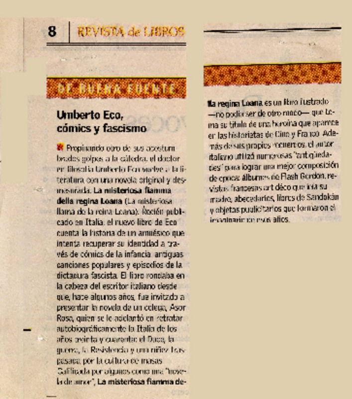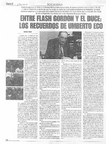 Entre Flash Gordon y el Duce: los recuerdos de Umberto Eco [artículo] Antonio D'Orrico.