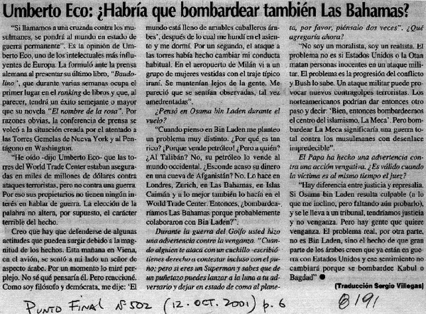 Umberto Eco, ¿habría que bombardear también Las Bahamas? [artículo]