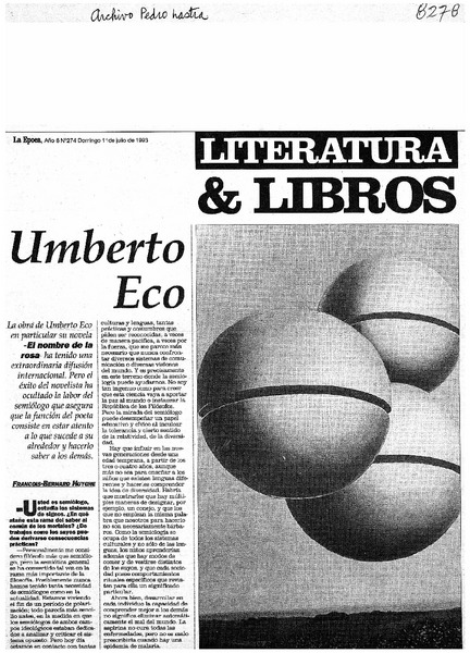 Umberto Eco [artículo] Francois-Bernard Huyghe.
