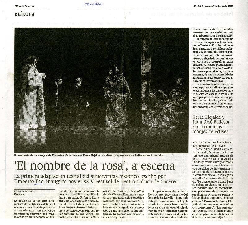 'El nombre de la rosa', a escena [artículo] Rosana Torres