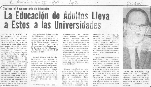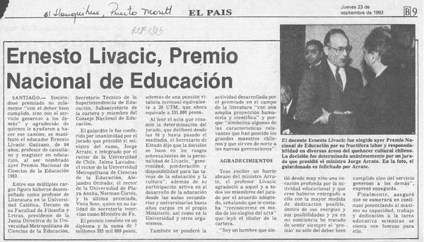 Ernesto Livacic, Premio Nacional de Educación [artículo]