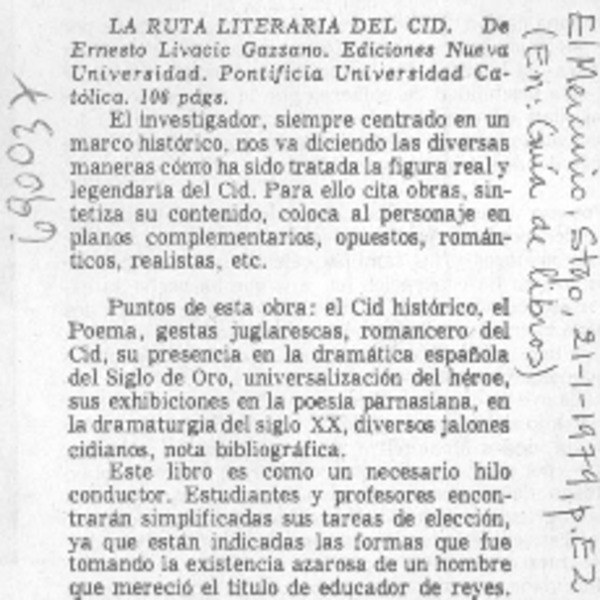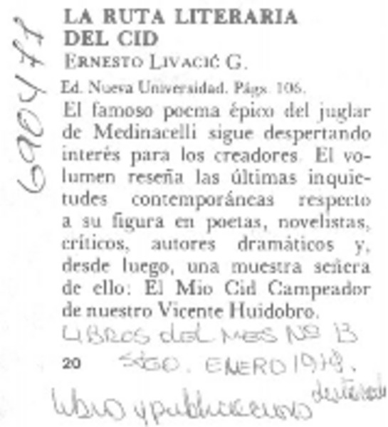 Autores chilenos - Livacic G., Ernesto - Ruta del Cid