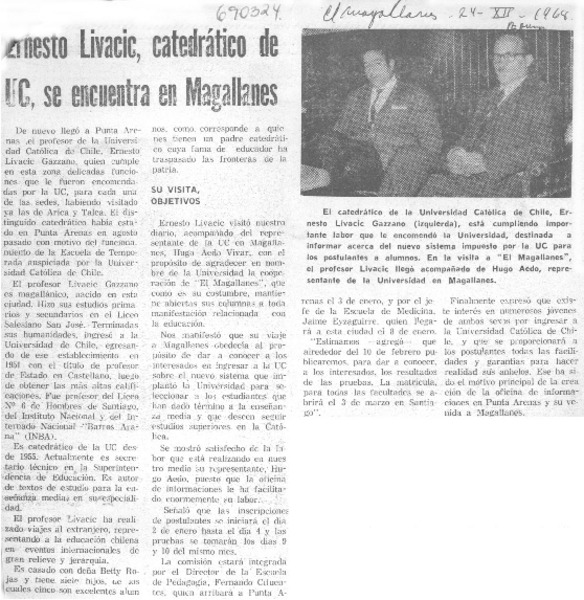 Ernesto Livacic, catedrático de UC, se encuentra en Magallanes. [artículo]