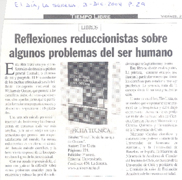 Autores chilenos - Ureta, Tito - En el filo de la navaja de Occam
