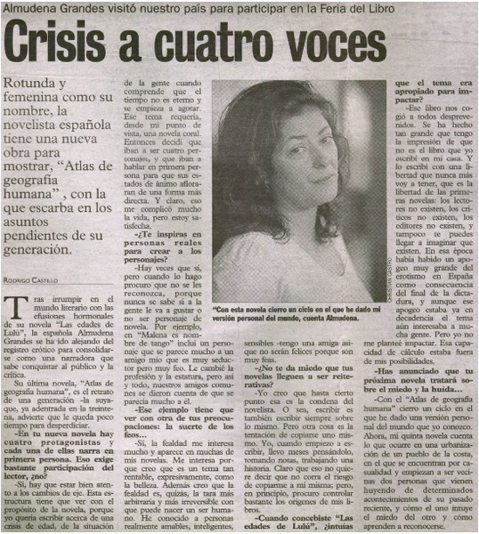Entrevistas - Autoras españolas - Grandes, Almudena - Atlas de geografía humana