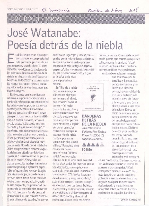 Animal de invierno - Watanabe, José - Autores peruanos - Mantis religiosa, La