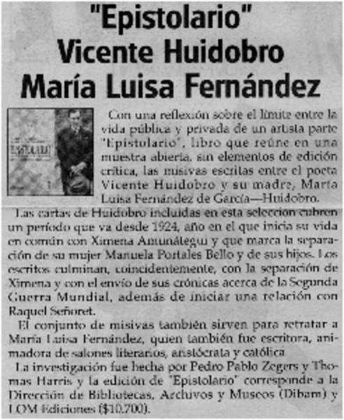 Autores chilenos - Huidobro, Vicente - Epistolario - Fernández, María Luisa