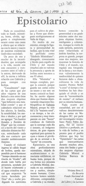 Autores chilenos - Mistral, Gabriela - Epistolario - Zegers Blachet, Pedro Pablo - Barraza de Estay, Isolina