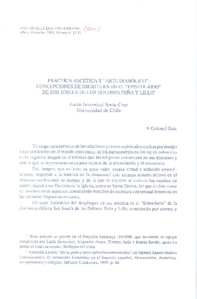 Práctica ascética y "arte diabólico": concepciones de escritura en el "Epistolario" de Sor Josefa de los dolores Peña y Lillo [artículo] Lucía Invernizzi Santa Cruz.