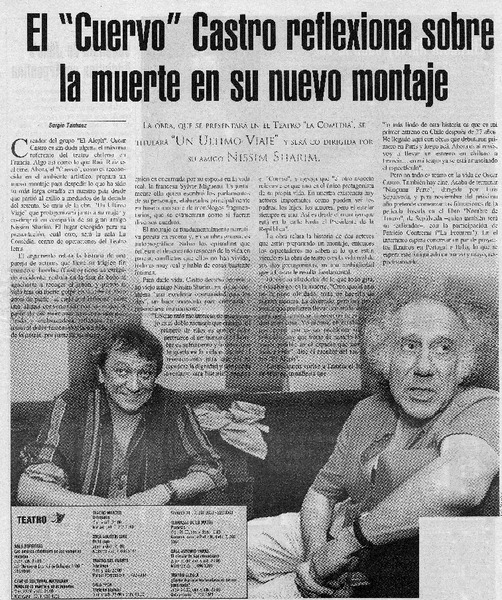 El "Cuervo" Castro reflexiona sobre la muerte en su nuevo montaje [artículo] Sergio Tanhnuz.
