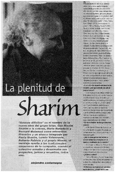 La plenitud de Sharim [entrevistas] [artículo] : Alejandra Costamagna.