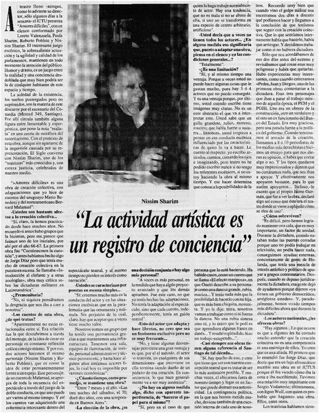 Nissim Sharim "siempre me he sentido a la vanguardia" (entrevista) [artículo] Cristián Labarca Bravo.