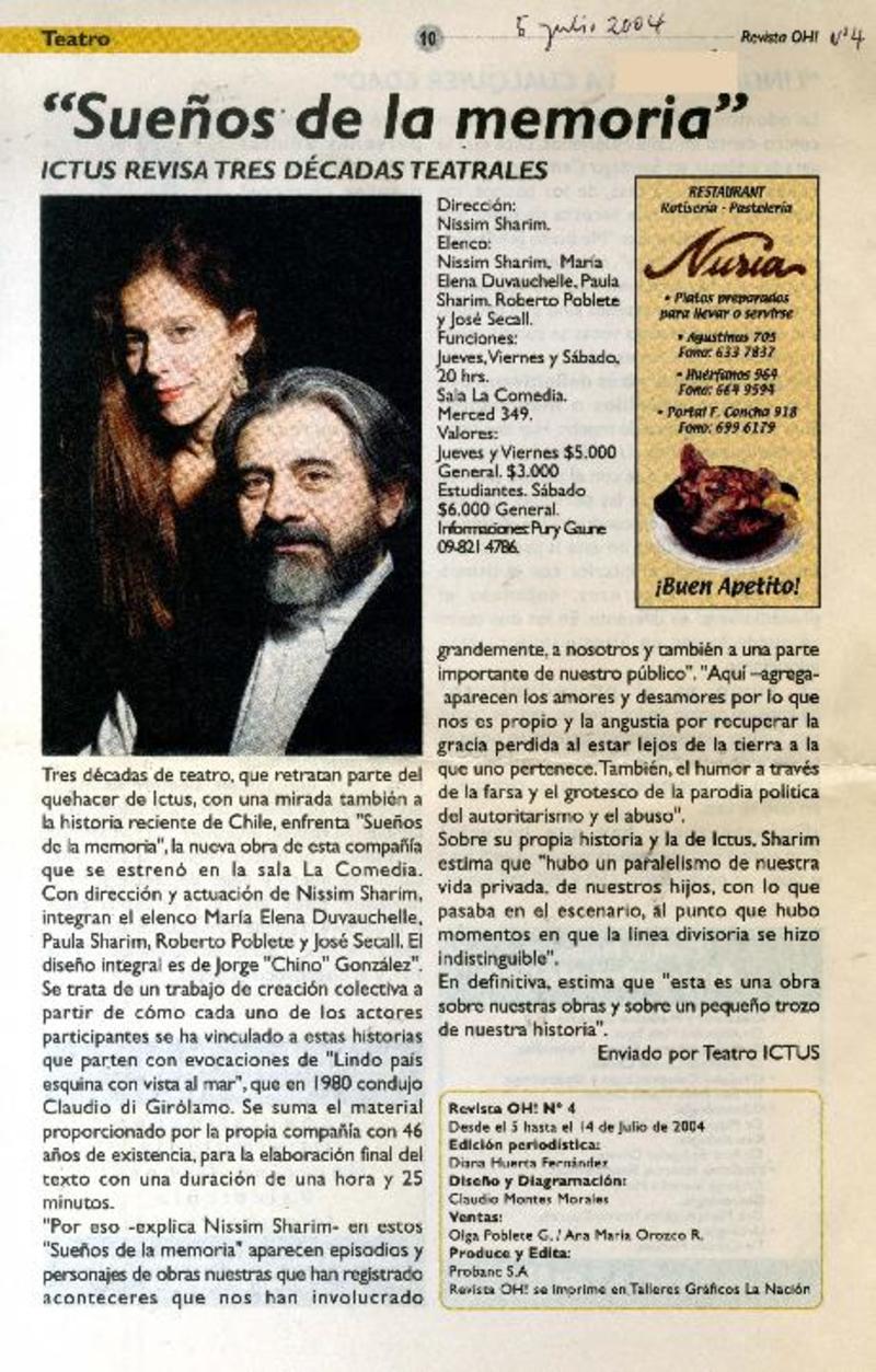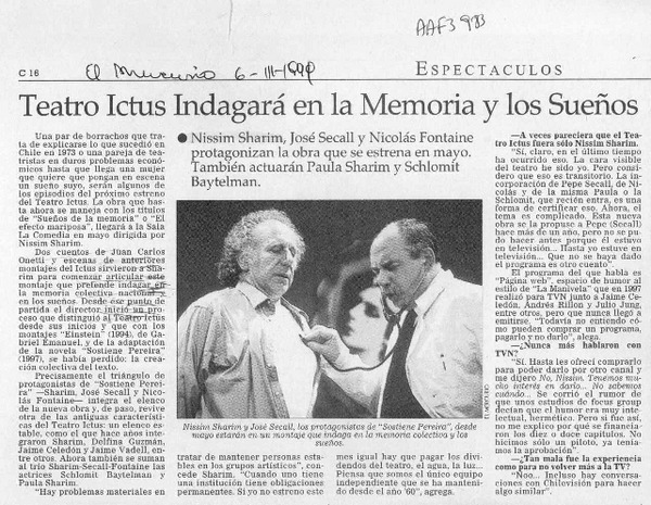 Teatro Ictus indagará en la memoria y los sueños [artículo].