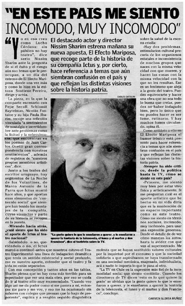 "En este país me siento incomodo, muy incomodo" [entrevistas] [artículo] : Carmen Gloria Muñoz.