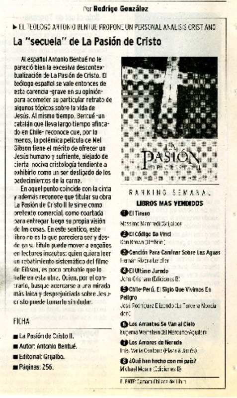 La "secuela" de la Pasión de Cristo [artículo] Rodrigo González.