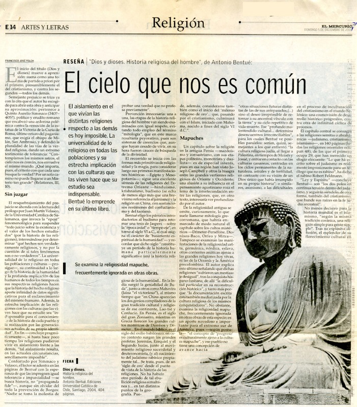 Dios y dioses. Historia religiosa del hombre" - Bentué, Antonio - Autores chilenos