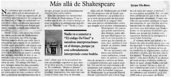 Mas allá de Shakespeare [artículo] Enrique Vila-Matas.