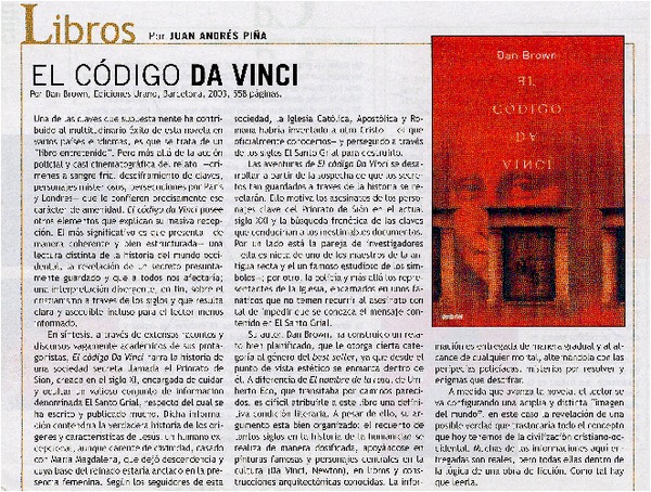 El Código Da Vinci [artículo] Juan Andrés Piña.
