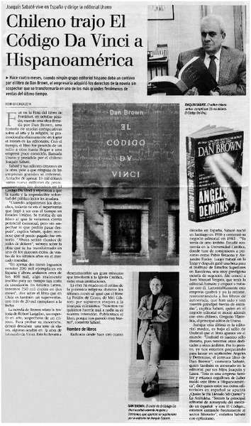 Chileno trajo El Código Da Vinci a Hispanoamérica [artículo] Rodrigo Gonzalez M.