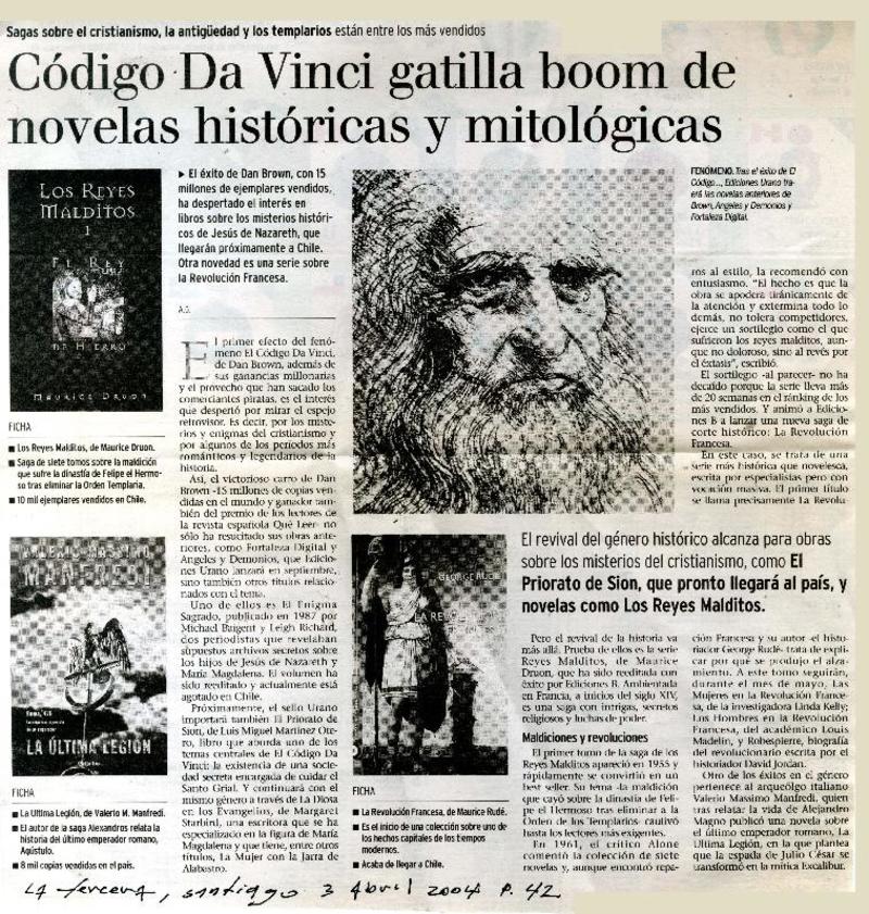 Código Da Vinci gatilla boom de novelas históricas y mitológicas [artículo] A. G.