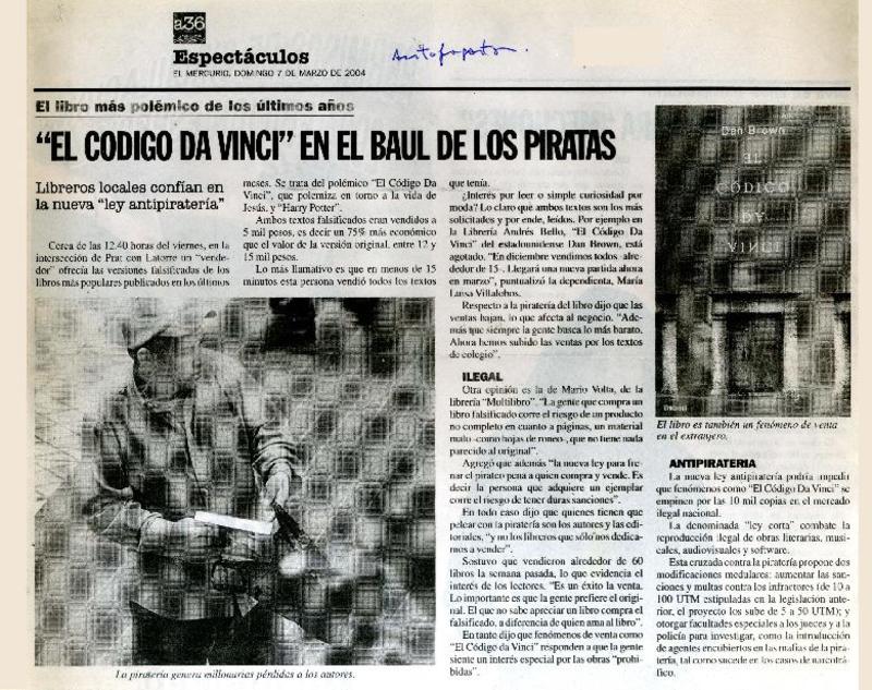 El Código Da Vinci" en el baúl de los piratas [artículo].