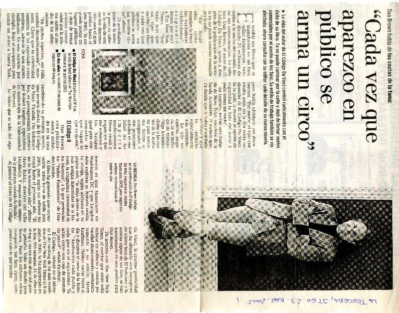 Dan Brown busca inspiración boca abajo [artículo] Brenda Otero.