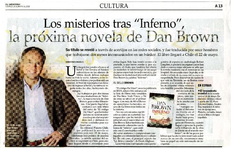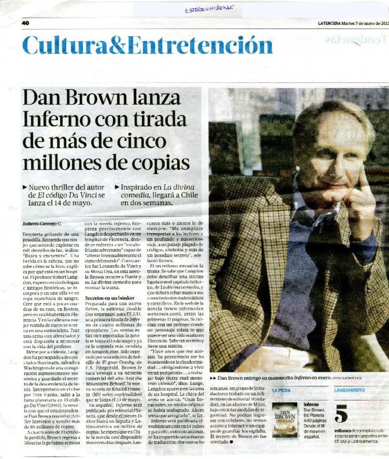 Dan Brown lanza Inferno con tirada de más de cinco millones de copias [artículo] Roberto Careaga C.