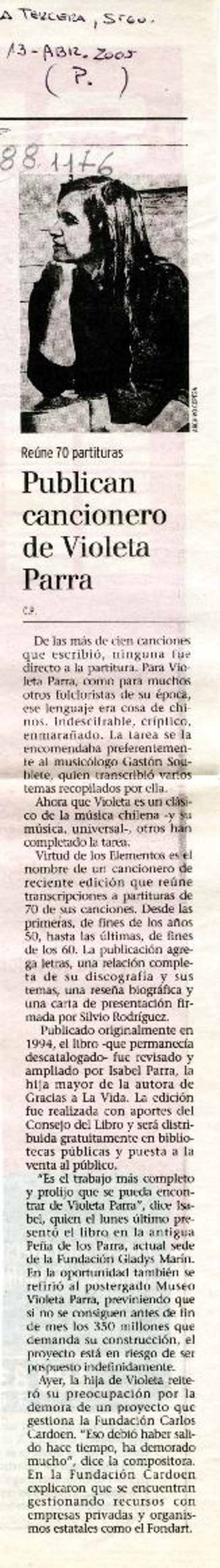 Publican cancionero de Violeta Parra [artículo] C.P.