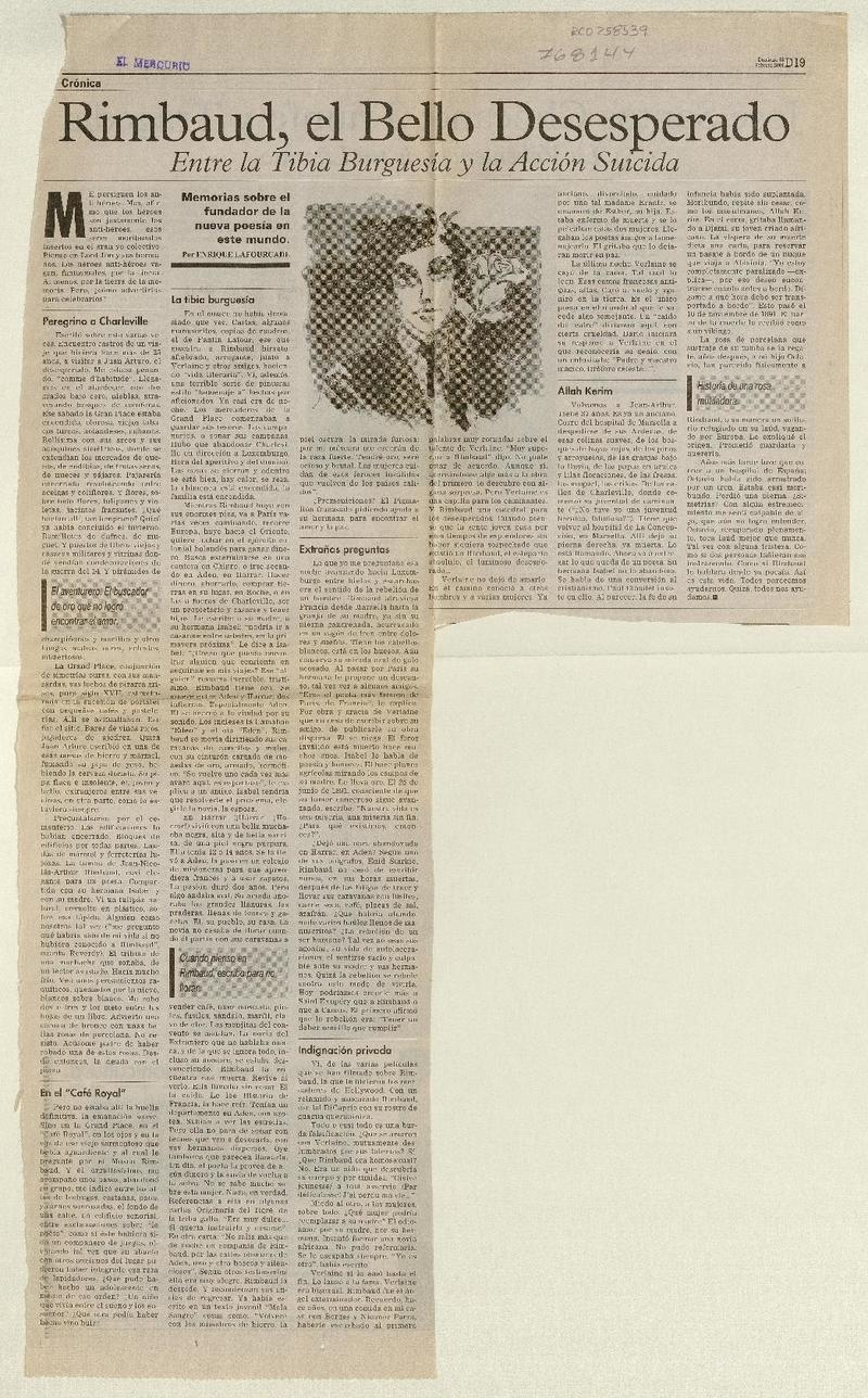 Autores chilenos - Lafourcade, Enrique - Autores franceses - Entrevista - El inesperado - Rimbaud, Jean Nicolas Arthur