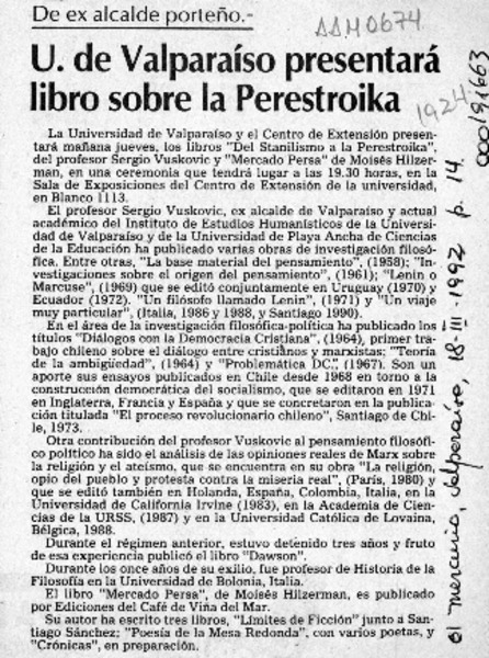 U. de Valparaíso presentará libro sobre la Perestroika [artículo].
