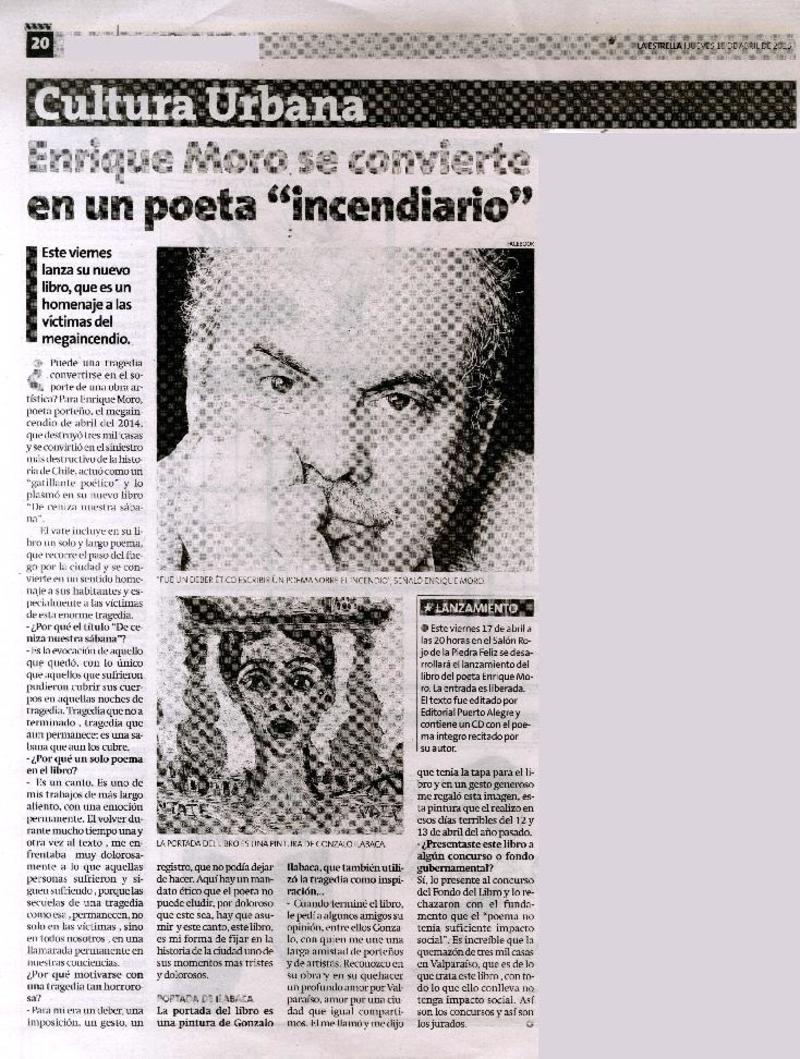 Autores chilenos - Entrevistas - Moro, Enrique - De ceniza nuestra sábana