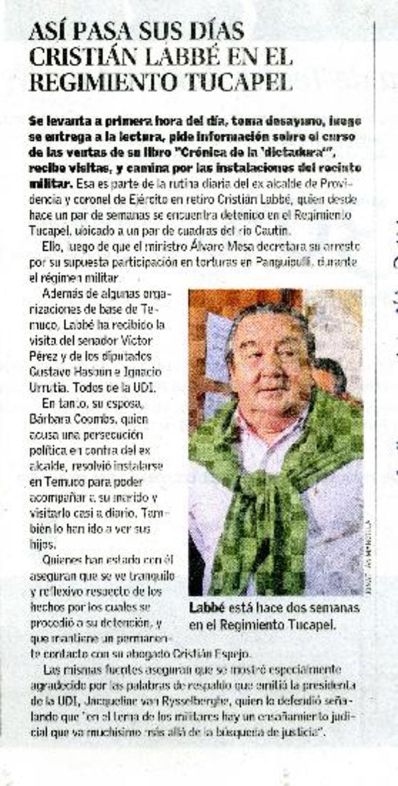 Así pasa sus días Cristián Labbé en el regimiento Tucapel. [artículo]