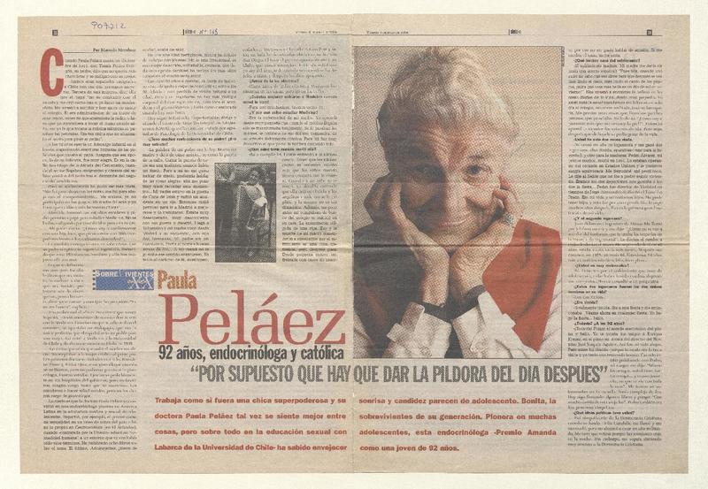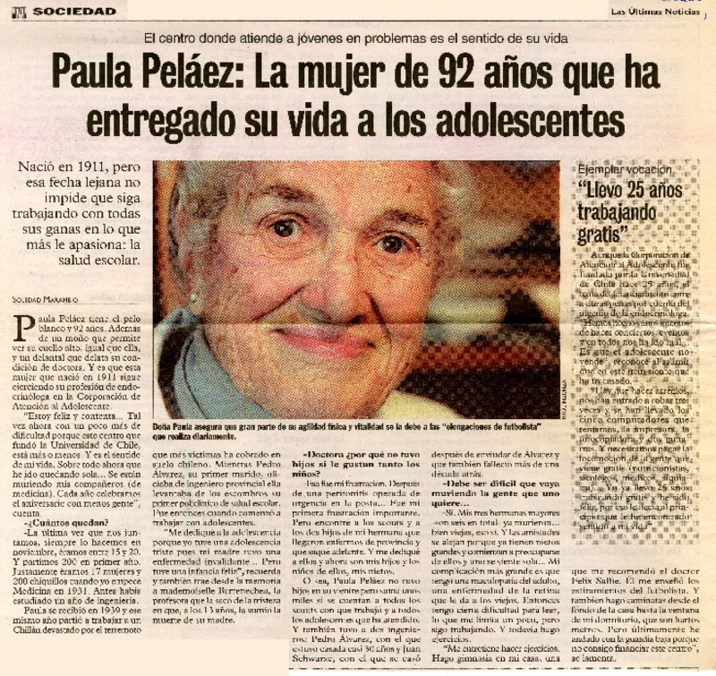 Paula Peláez: la mujer de 92 años que ha entregado su vida a los adolescentes [artículo] Soledad Marambio.