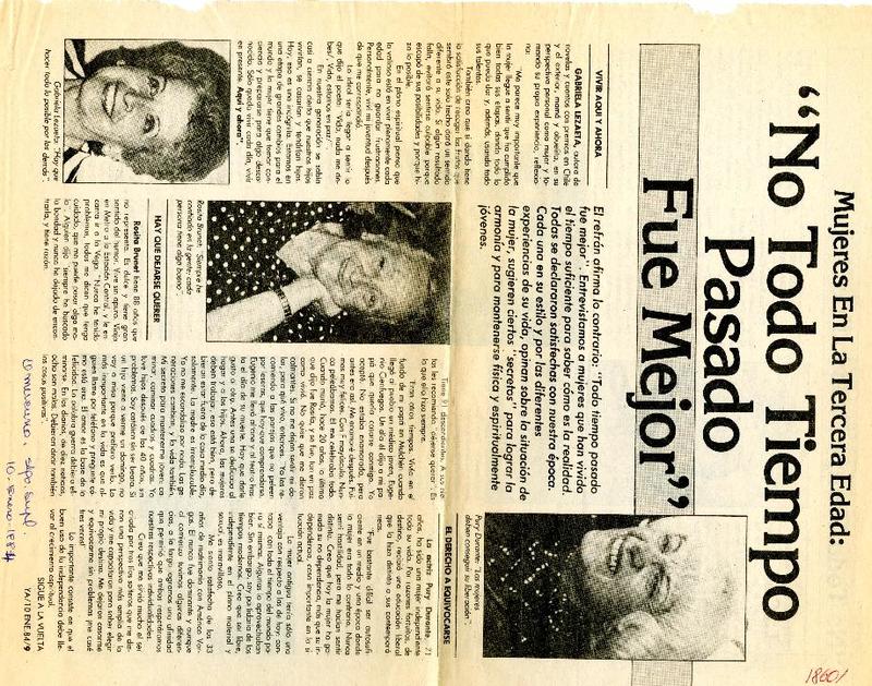 Mujeres en la tercera edad, "No todo tiempo pasado fue mejor" [artículo].