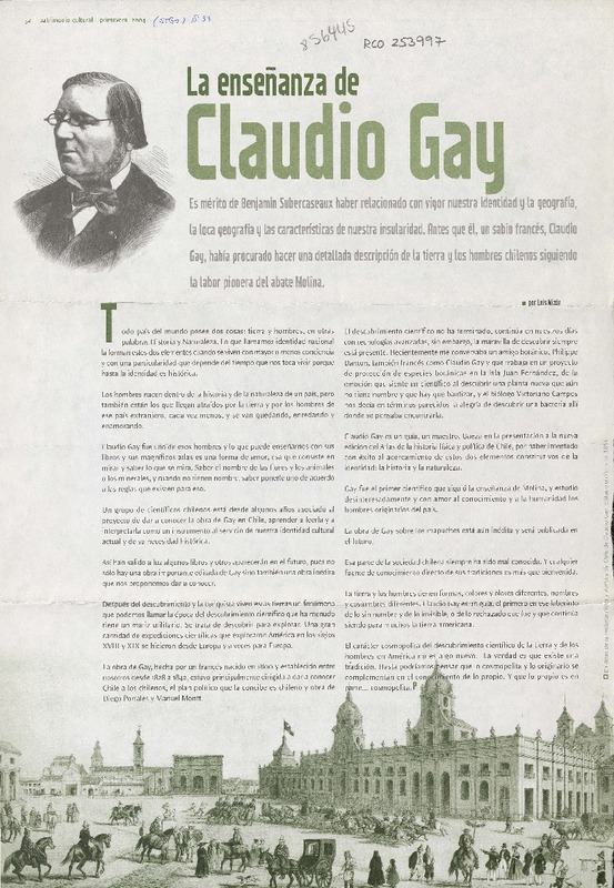 Claudio Gay y la formación de la identidad cultural chilena [artículo] Andrés Chamorro Montenegro.