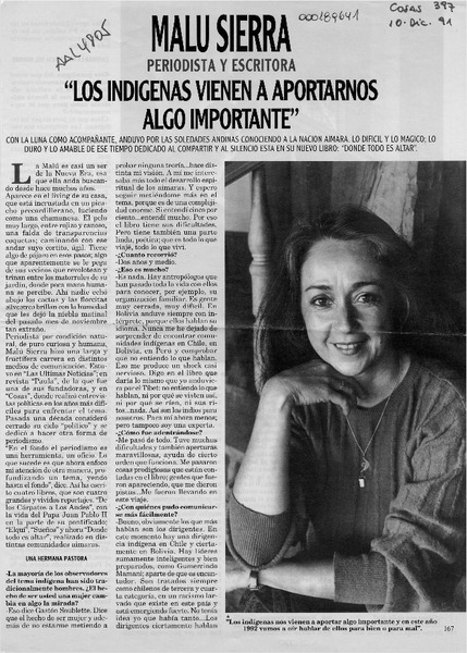 Malú Sierra, tras los misterios mapuches [artículo] carmen Luz Ibarra.