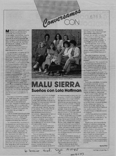 Malu Sierra, sueños con Lola Hoffman [artículo] Sylvia Ríos.