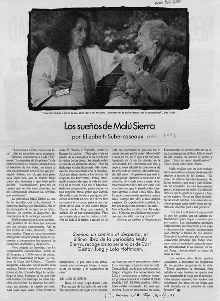 Los sueños de Malú Sierra [artículo] Elizabeth Subercaseaux.