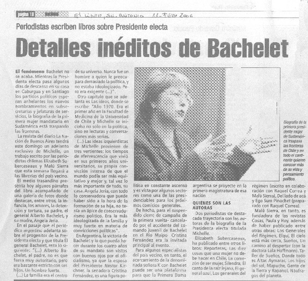Detalles inéditos de Bachelet [artículo]