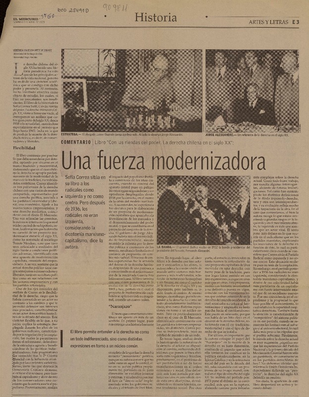 "Con las riendas del poder. La derecha chilena en el siglo XX". [artículo] Rodrigo Pinto
