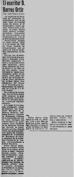 El escritor D. Barros Ortiz [artículo] José Vargas Badilla.