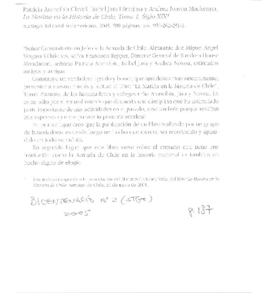 Arancibia, Patricia - Autoras chilenas - Jara, Isabel - La Marina en la Historia de Chile, tomo 1 - Novoa, Andrea