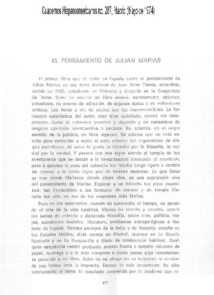 Autores españoles - Soler Planas, Juan - Marías, Julián - Pensamiento de Julián Marías