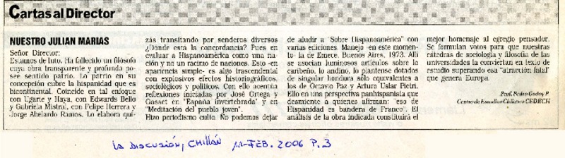 Nuestro Julián Marías [artículo] Pedro Godoy P.