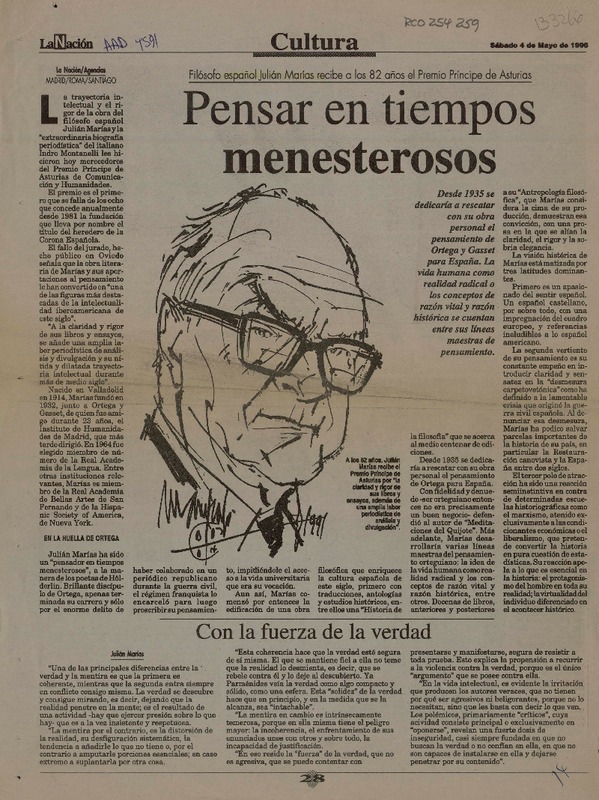 Julián Marías gana premio "Menéndez Pelayo" [artículo]