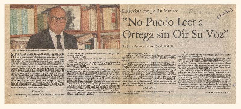 "No puedo leer a Ortega sin oír su voz" [entrevista] [artículo] : Jaime Antúnez Aldunate.